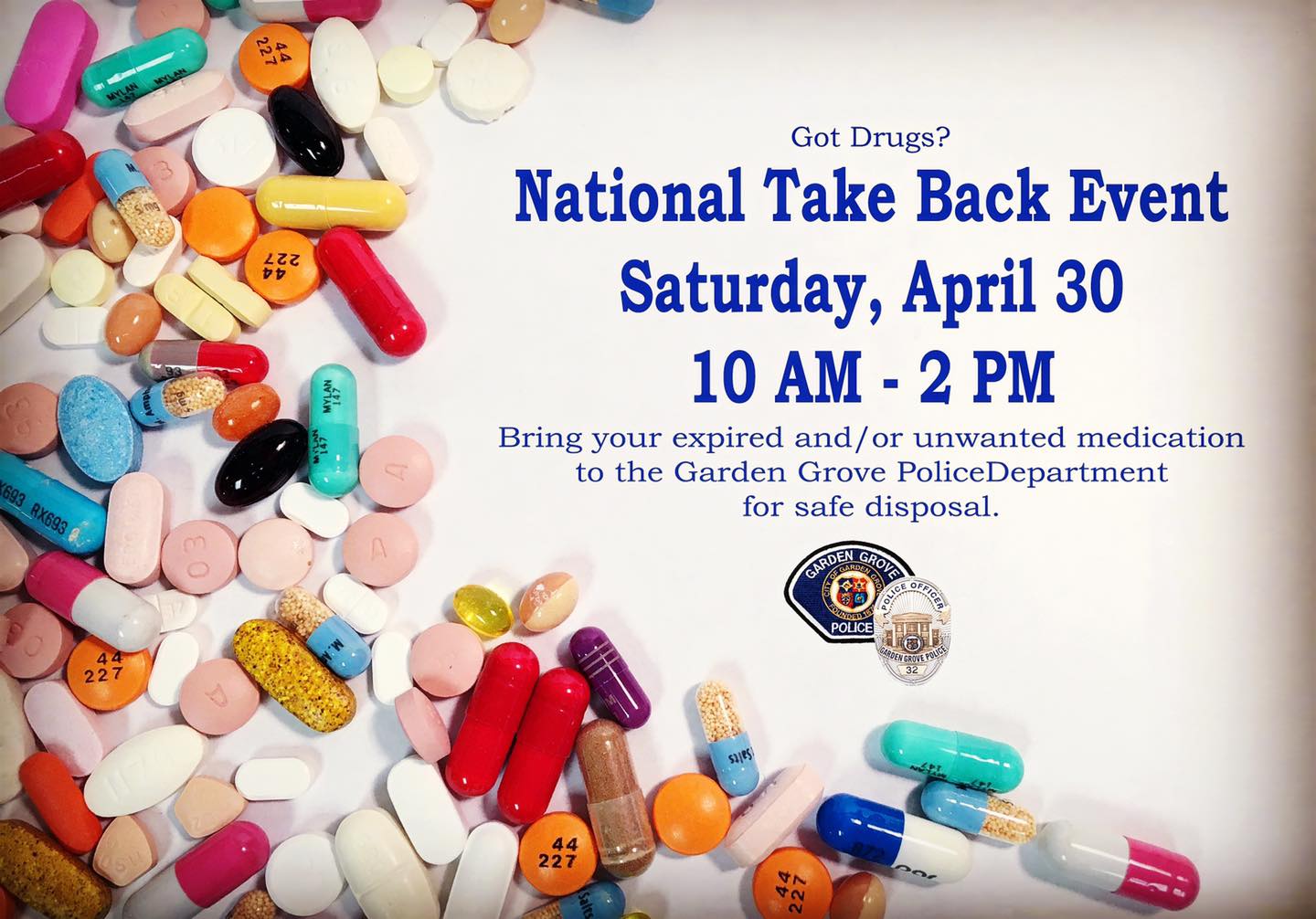City Of Garden Grove On Twitter Have You Cleaned Out Your Medicine Cabinet Tomorrow Is Nationaltakebackday Bring Your Expired Unwanted Medication To Gardengrovepd 11301 Acacia 10am 2pm For Anonymous Safedisposal Visit Https T Co